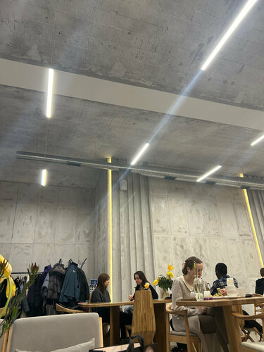 Очень классное и приятное пространство. Вкусный кофе, а также томатный суп)